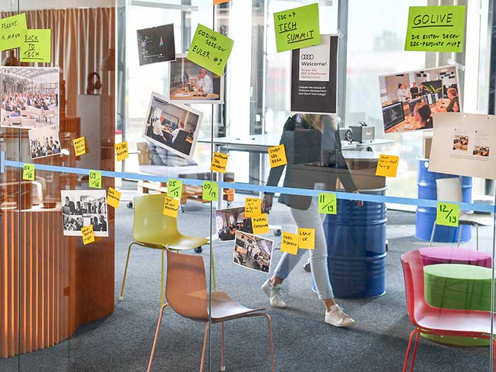 La missione del nuovo Software Development Center Audi è sviluppare soluzioni IT intelligenti, sicure, su misura per il cliente e scalabili, ovvero che possano essere facilmente replicate o modificate nelle dimensioni. La posizione del centro, che si trova molto vicino al quartier generale Audi di Ingolstadt, è funzionale: aiuta i collaboratori a pensare fuori dagli schemi, in un ambiente lavorativo di nuova concezione ma comunque vicino alle aree produttive dello stabilimento.